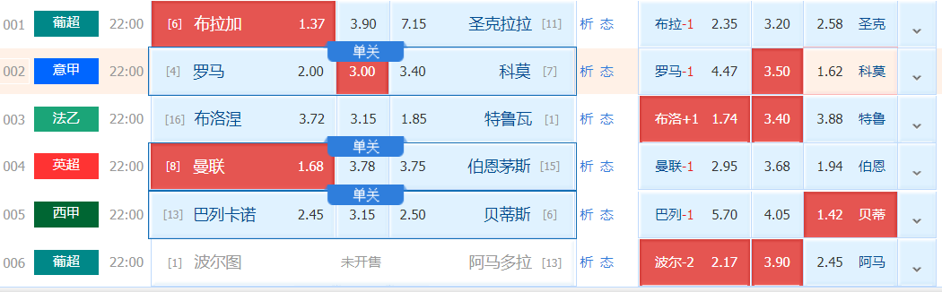 周一001 葡超:布拉加VS圣克拉拉