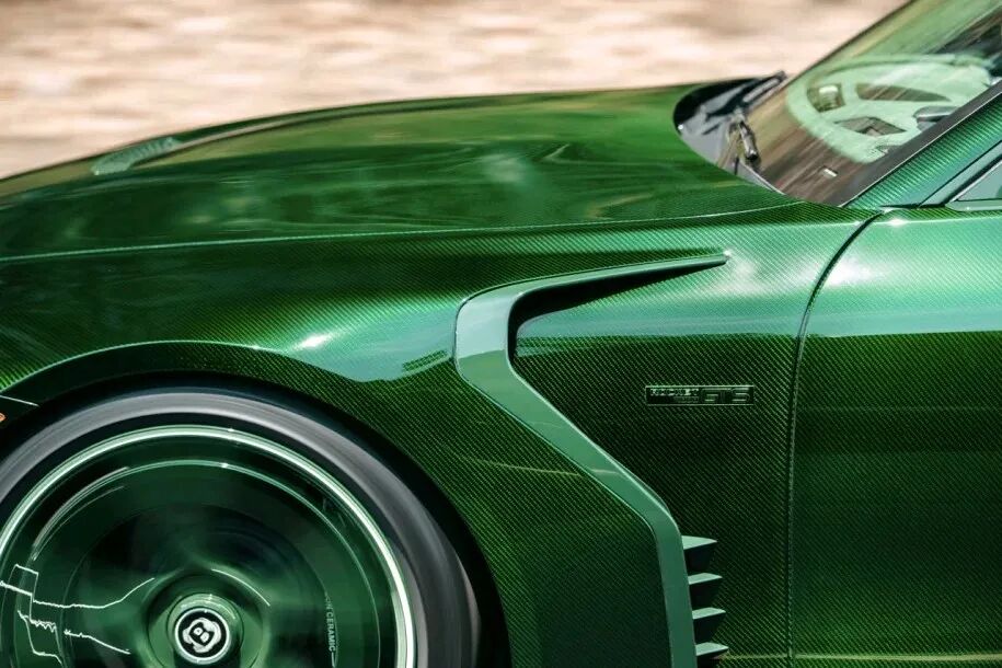 最初亮相的展车采用的是传统的裸露碳纤维,而这台Rocket GTS则是将整个碳纤维车身都变成了绿色。你绝对找不到一台普通的梅赛德斯长得像它这样。
