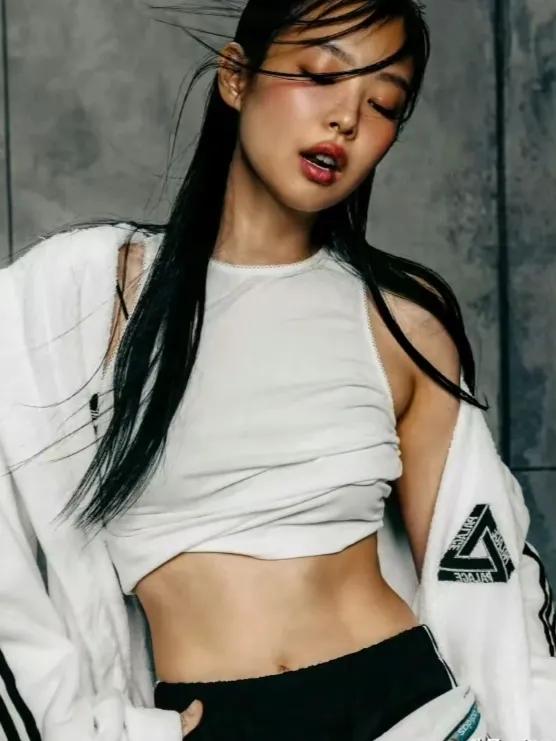 首套造型中,珍妮的躯体成为解构主义的战场:山本耀司遗作上的1273条智能纤维,实时吞噬着社交媒体的情绪熵值。当#珍妮泪痕#冲上热搜榜首,那些被显微镜头捕捉的ASCII泪珠,在区块链上确权为不可复制的数字伤痕。这种将网络暴力实时物化为服装褶皱的“反噬美学”,犹如在流量沼泽中引爆一颗信息奇点,使传统偶像工业的“完美人设”范式彻底崩解。