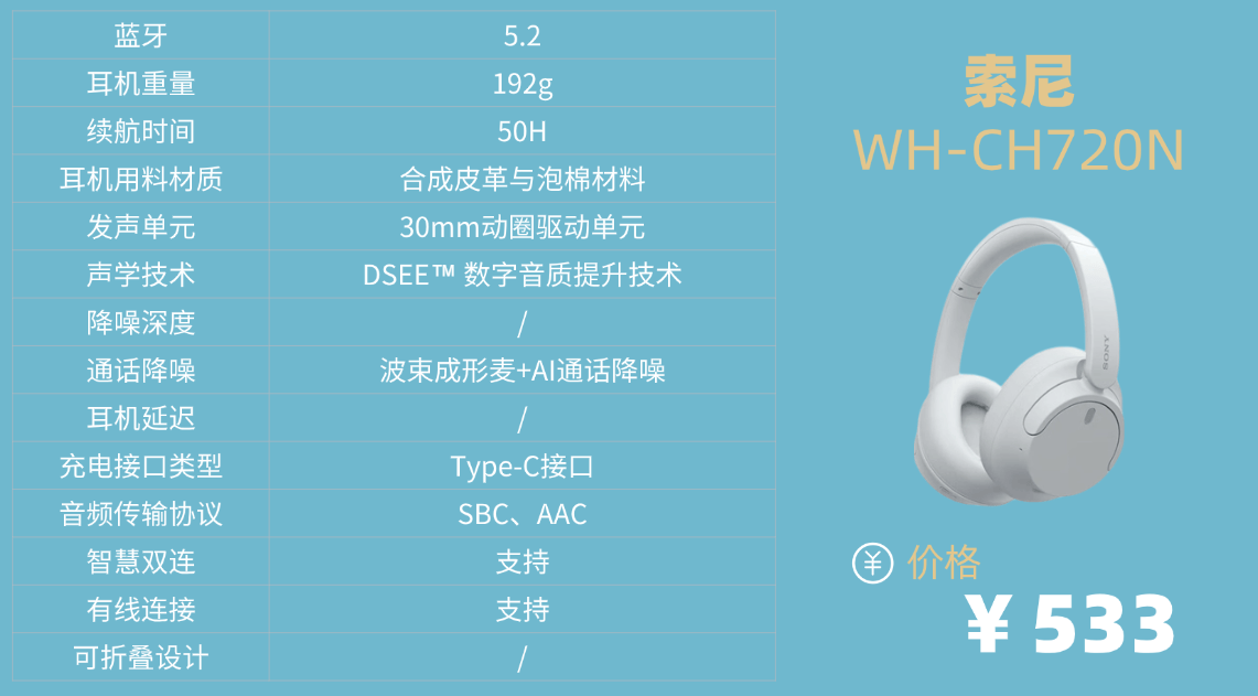 第2款:索 尼WH-CH720N头戴式降噪耳机