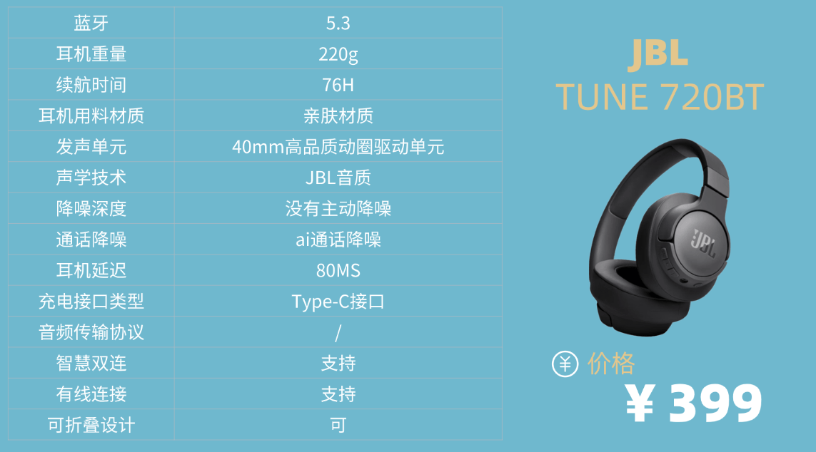 第10款:J BL T UNE 720BT头戴式降噪耳机