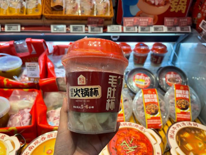 今年,盒马还首次推出了一人食火锅杯,只要加入火锅底料和水,微波炉加热5分钟,即可得到一杯热气腾腾的火锅。