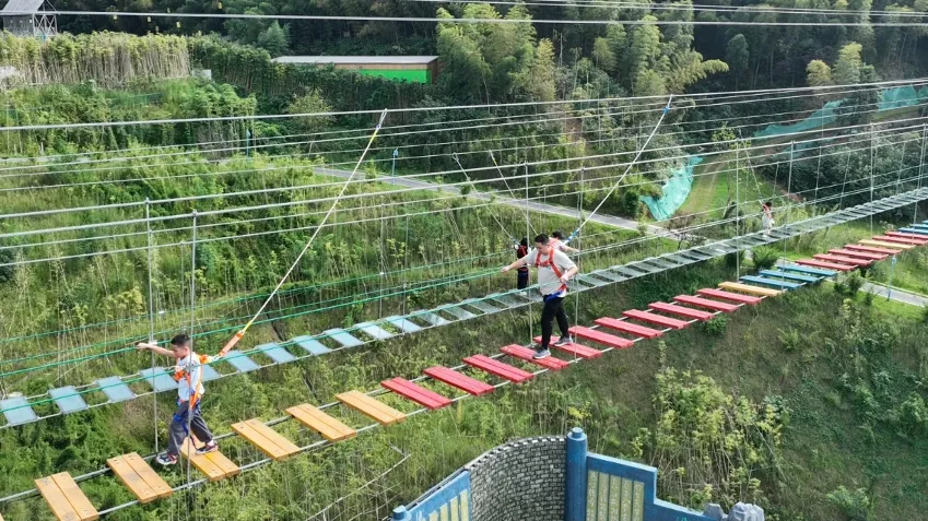 为了让更多人实地体验这一大自然的馈赠,景区主动取消了门票,免费向公众开放,从门票经济到体验经济的转变。除了自然风景,这里还新增了许多游玩项目。可以挑战高空滑索,体验“凌空飞渡、俯瞰竹浪”的惊险与刺激;晚上还有沉浸式楚风美学剧场《桃花江竹海幻境》,以屈原在桃江的生活经历为蓝本,用360度的美学场景带观众穿越千年,成为了景区夜游的最大亮点。剧场自推出以来已演出超400场,入选省级智慧旅游沉浸式体验新空间培育试点,绝对是夜游的重头戏。