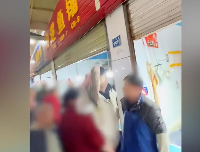 商家的妻子见状,连忙上前劝阻,试图阻止事态进一步恶化。