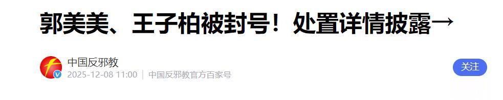 2025年11月,中央网信办出手,郭美美的所有社交账号被永久封禁。