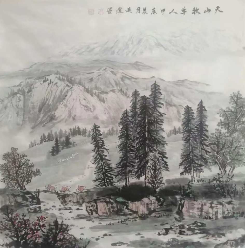 王延建的艺术人生,是对“执着”与“热爱”的最好诠释。他以四川人的坚韧与执着,在新疆这片广袤的土地上,用数十年的时光坚守国画艺术初心;他以笔墨为桥,连接传统与现代、自然与人文,将西域山水的壮美与时代发展的脉搏融入画作之中。他的作品,既有传统国画的笔墨神韵,又有鲜明的地域特色与时代气息,更饱含着对这片土地深沉的爱。