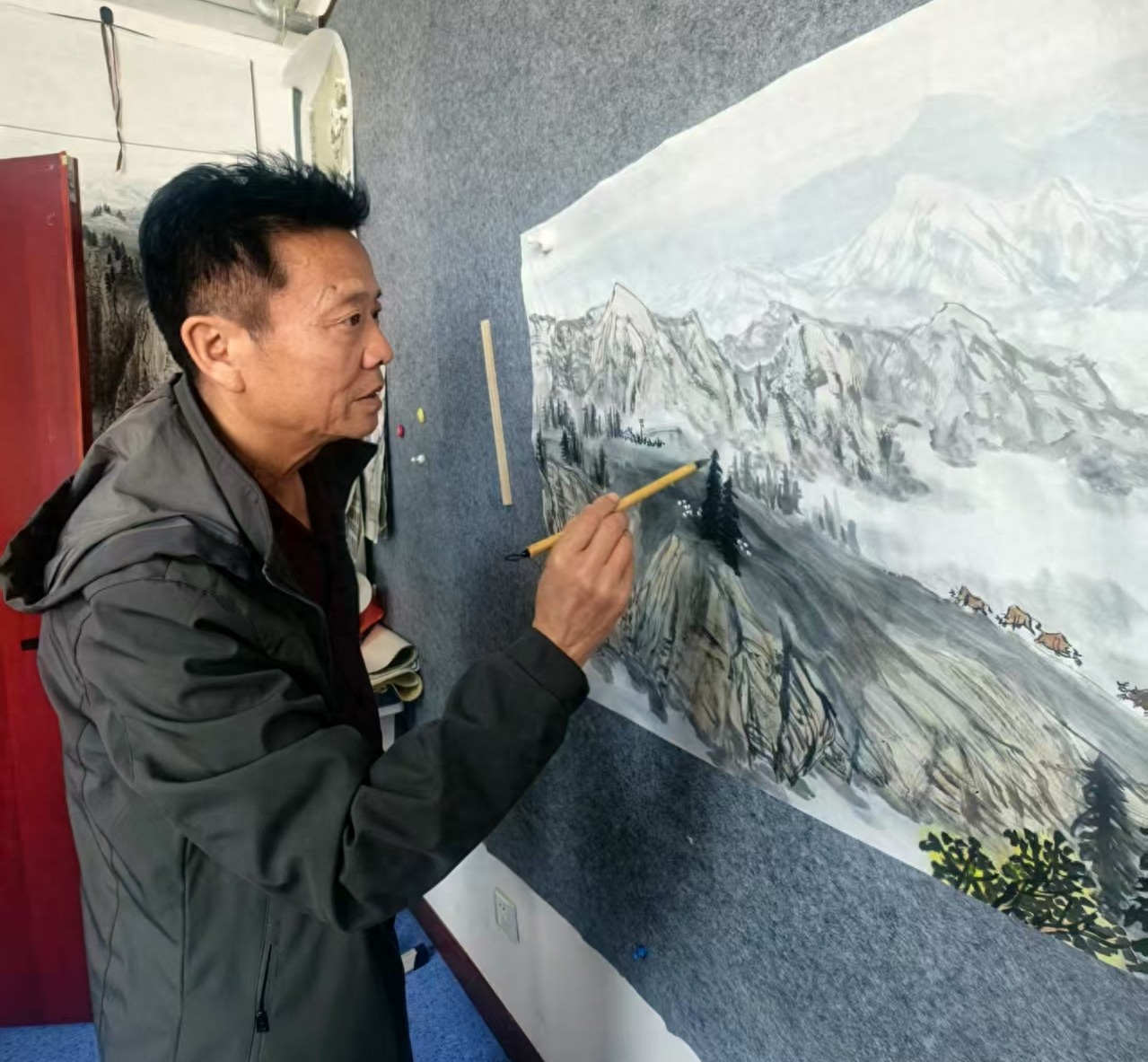此外,他的作品还积极呼应时代主题,传递正能量。2021年,作品《夏尔沟秋韵》入选乌鲁木齐市美协“新年祝福·文化润万家”乌鲁木齐地区美术作品展,以秋日夏尔沟的绚烂景色,为市民送上新春的美好祝愿;2023年,作品《山居图》入选“深入学习宣传文化润疆——新春送祝福·文化进万家”作品展,画作通过描绘山间居所的宁静雅致,传递出文化润疆的深厚内涵,为边疆地区的文化建设添砖加瓦。