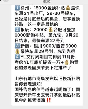 “先生您别急,我正在帮您查!听说邻省那个市的区补政策昨天又有调整,叠加国家以旧换新补贴和我们厂家的优惠,最高能到5万!”在某品牌展厅,销售顾问小李一边接着客户电话,一边飞快地滑动手机,在各个省市的政务APP、车企补贴小程序之间来回切换。