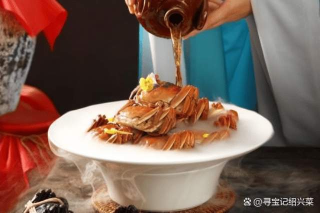 众所周知,绍兴饮食讲究十大风味:咸鲜合一、糟醉、河鲜、鱼茸、单鲍、霉鲜、酱腌、干菜、田园、饭焐。其中糟醉一味尤为突出,经典代表有醉虾、醉鸡、醉蟹等,这些菜品通过黄酒的浸泡,使得食材充分吸收酒香,其精髓均在于黄酒的运用。
