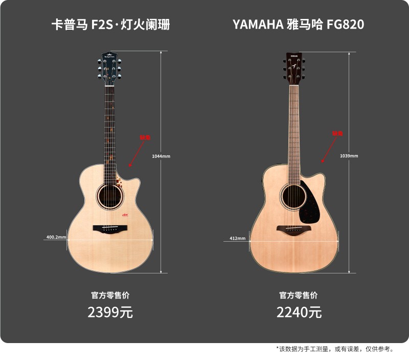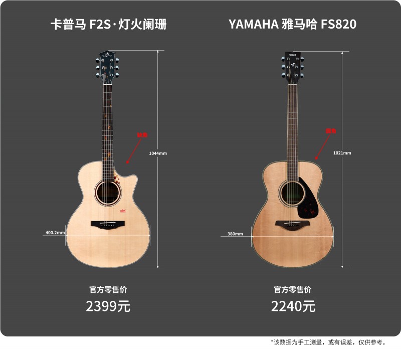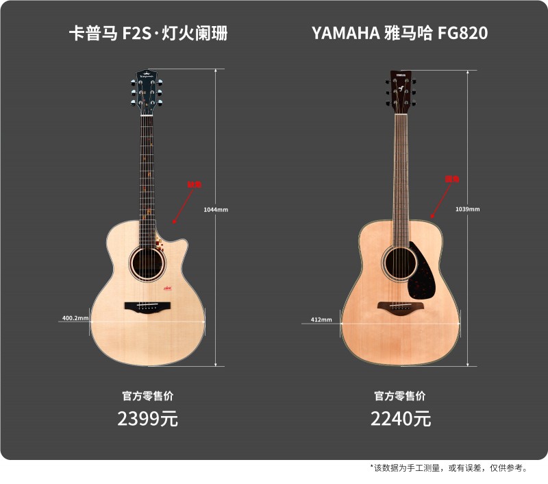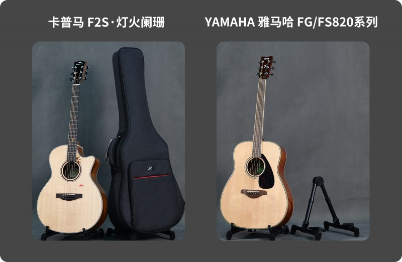 卡普马F2S属于中国品牌,产地为长沙·宁乡,雅马哈FG/FS820属于日本品牌,产地为杭州·萧山