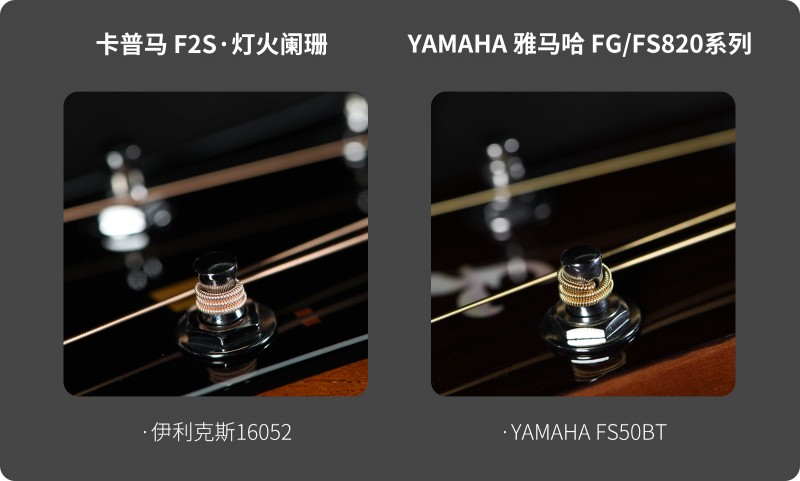 卡普马F2S·灯火阑珊用的是伊利克斯16052的磷青铜琴弦,雅马哈FG/FS820系列官方公布为Yamaha FS50BT