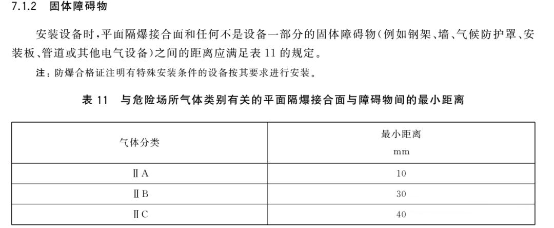隔爆型设备隔爆接合面与障碍物距离要求?