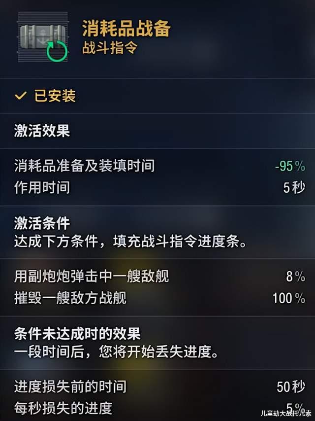 另外它有着25%鱼雷防护,12.6的水隐和8.89的空隐,30节的航速搭配出色的舵效,9.7秒的转向速度堪比巡洋舰,再加上22.5节的弹射起步,让它在近战中格外灵活。而它的最强之处在于,71600的血量基础上,还搭载了F技能“消耗品操作准备”,通过副炮命中敌舰蓄力,每命中13发就能积满进度,激活后5秒内消耗品准备和冷却时间减少95%,这意味着只要副炮持续开火,损管和大保健的80秒CD就能缩短到4秒,超大血池配合高频补给,就算是457mm主炮也很难将其击沉。
