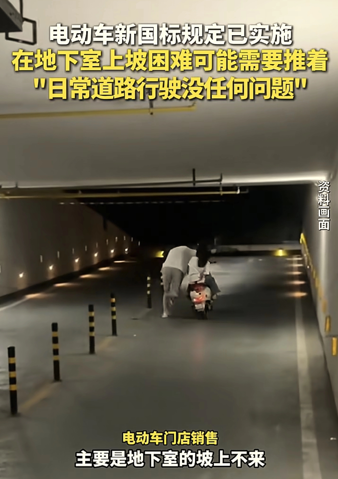 部分车型没有储物空间,连头盔、雨衣、电动车充电器这些日常用品都没地方放,后屁股光秃秃的只能单人骑行,这样的车您会买吗?还有车辆最高速度只有25公里,还没有骑自行车的速度快。宣称提升了车辆低速状态下的爬坡能力,现实情况是胖的人骑新国标电动自行车连地库都爬不上来。