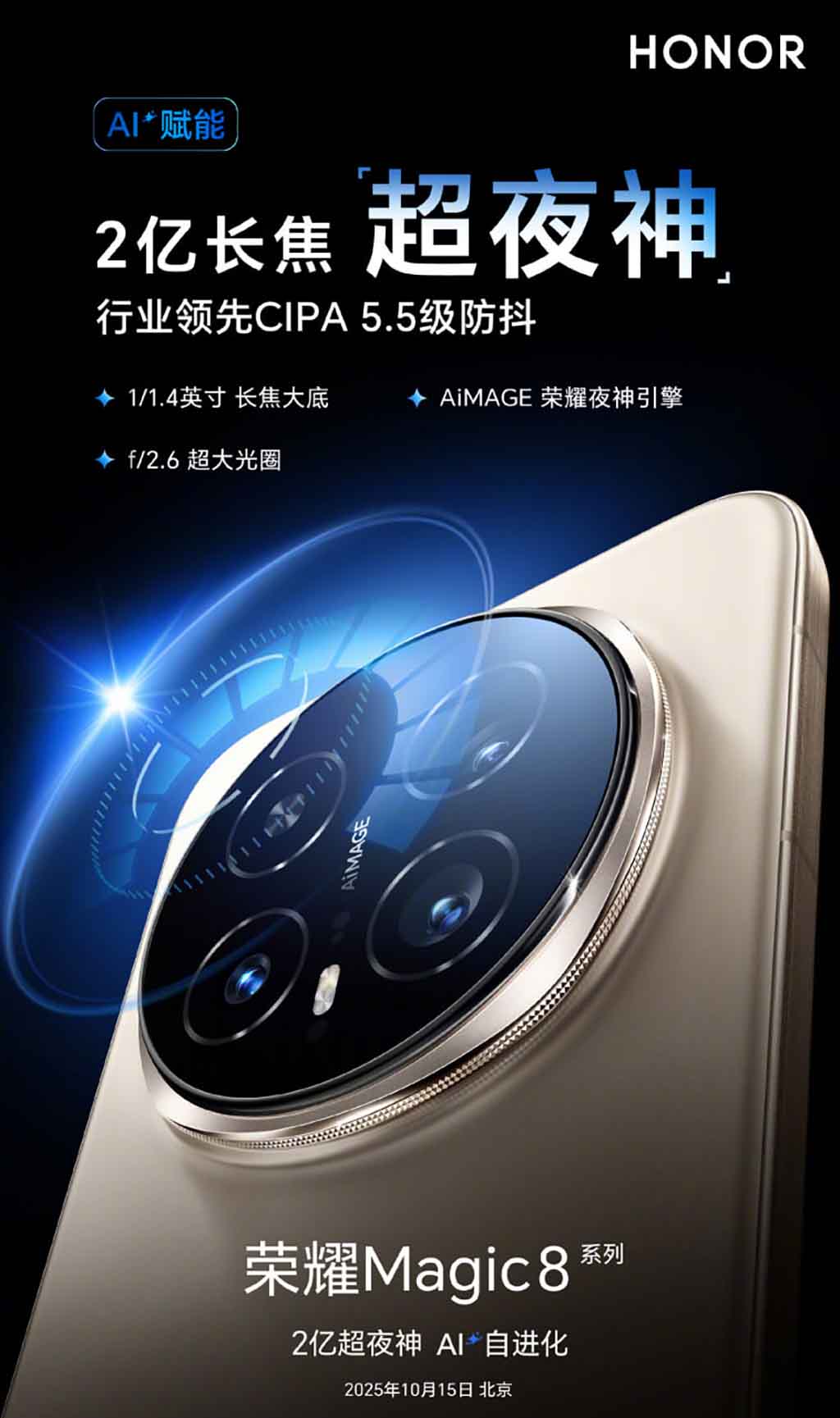 Magic 8 Pro采用了一颗200MP长焦镜头,并搭载全新的AI夜拍相机。它被命名为“200MP长焦超级夜神传感器”。无论光照条件或距离如何,它都能捕捉动态图像。