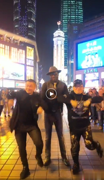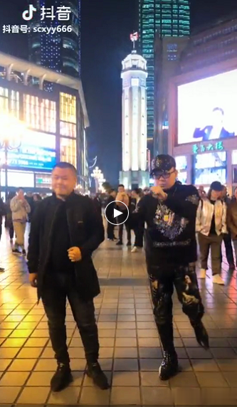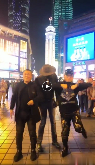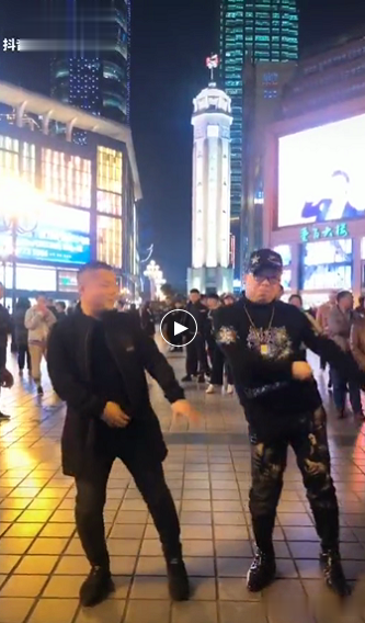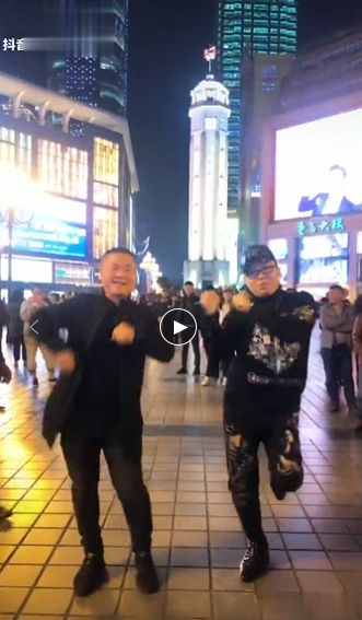 演员彭波和抖音800万粉丝的山城小岳岳一起拍抖音,配合的很默契,两个人在广场上面跳舞,引来很多人围观,都在观看