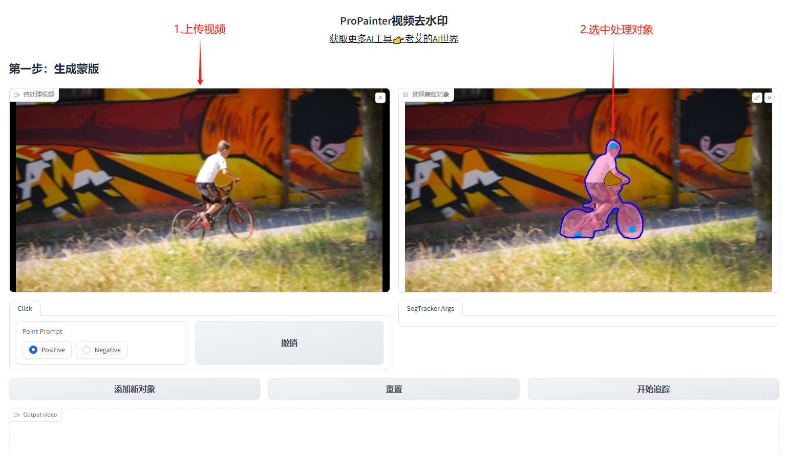 3、点击“开始追踪”,程序会自动运行,并生成准备移除物体的视频
