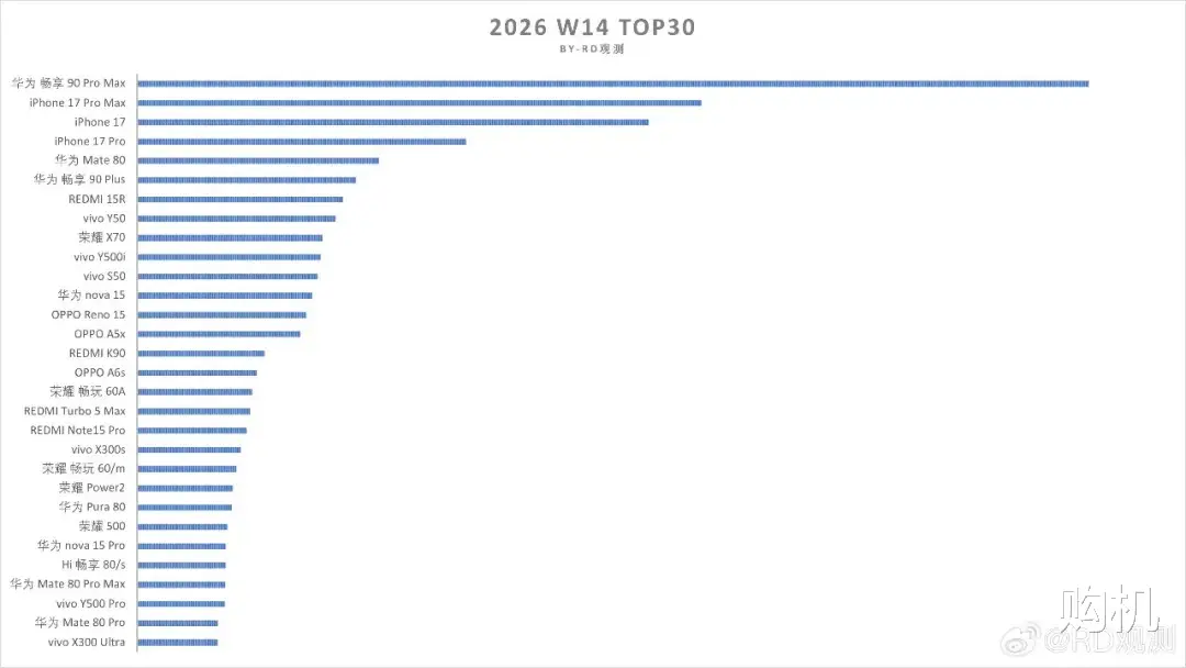 据博主透露,华为畅享90 Pro Max首周激活销量40W+,超越iPhone 17全系列,拿下W14单周单品销量第一;