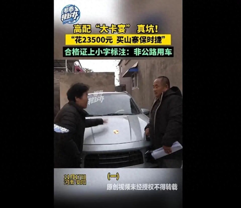大爷花2万多网购“高配大卡宴”,到手变“保时捷鹿”:山寨中的山寨!合格证上小字标注:非公路用车,妻子怒拍车盖:咋上路?厂家回应