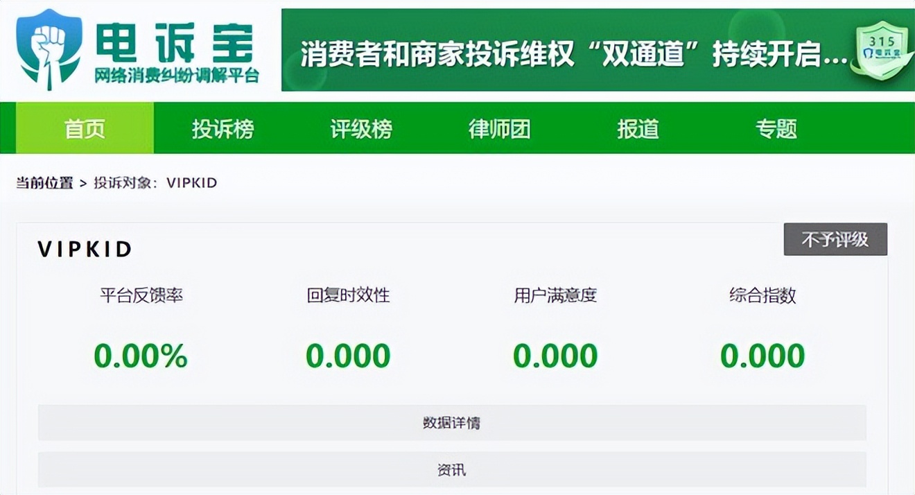 近日,网络消费纠纷调解平台“电诉宝”接到用户投诉“VIPKID”存在申请退费后流程陷入长期停滞、客服渠道失效、态度恶劣、欺诈消费者等问题。