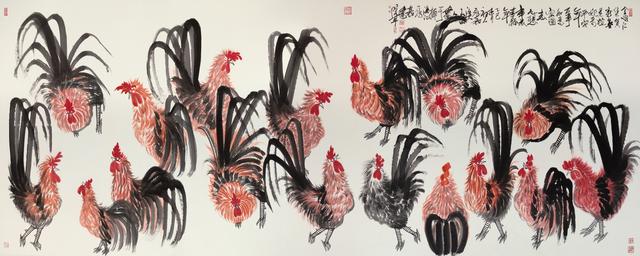 溪江画派创始人、指墨画领军人物、国画大家朱祖国巨幅鸡
