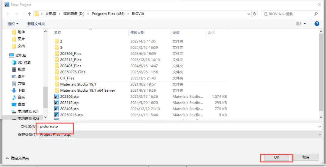 2.新建一个picture.stp的项目,并点击OK按钮。