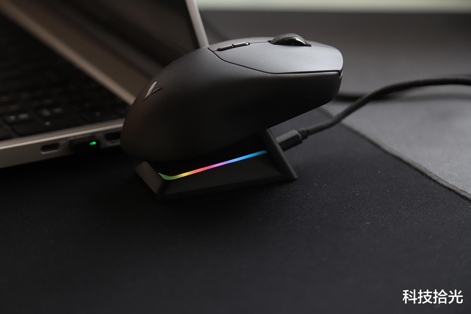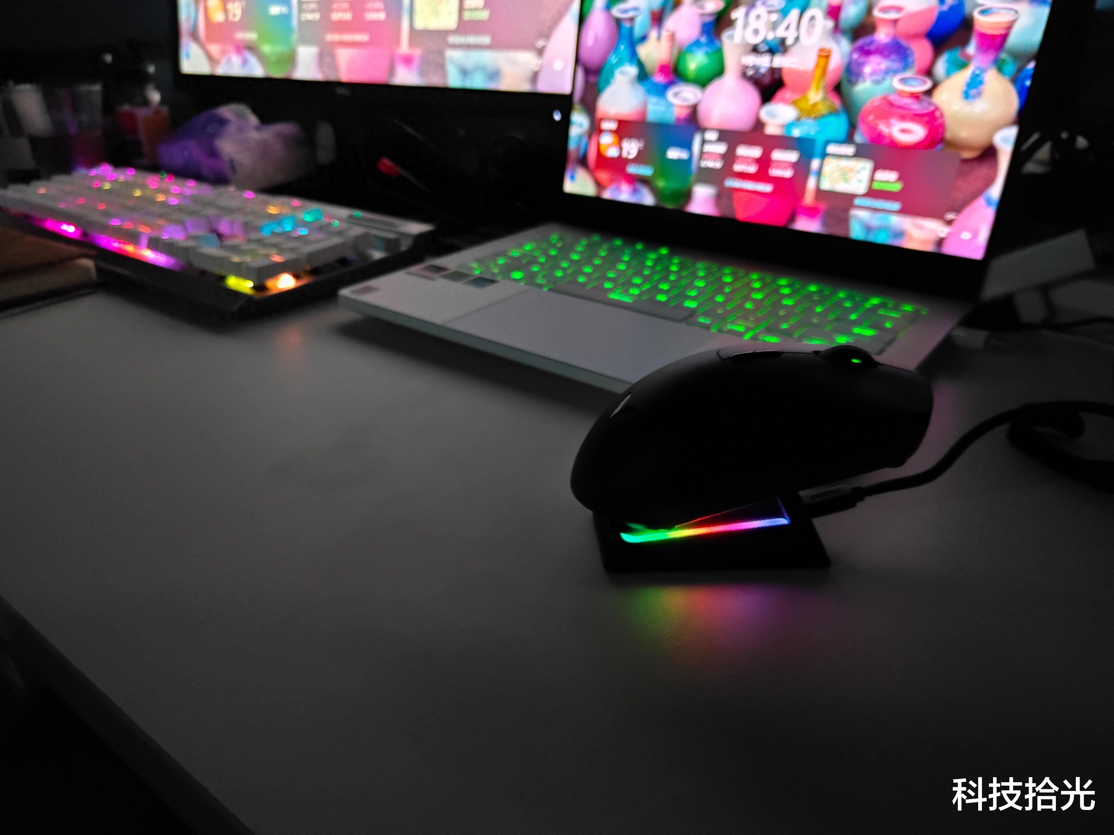但是还可以更高逼格一些:雷柏P5 磁吸触点充底座。为磁吸充电底座,幻彩RGB灯效,前面还有拓展的USB接口。