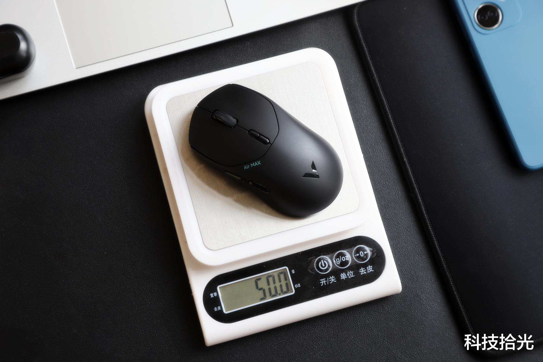 鼠标本体的重量约为50g,无论是电竞还是办公都很适配,现在鼠标圈大方向就是轻量化,无论是电竞操作还是携带都更具优势。