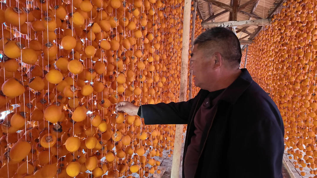 “截至2024年,隐士村有柿子树75万棵,种植面积达1.5万亩,当地主要种植的柿子品种为小萼牛心柿,年产柿子总量为2000万斤,柿饼产量为700万斤,柿子相关产业的综合产值过亿元。”临朐县五井镇工作人员说。