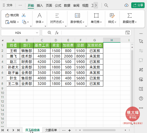 如下图所示,“员工信息表”是每个员工的工资信息和发放状态,会实时汇总未发工资信息到“欠薪名单”表中。