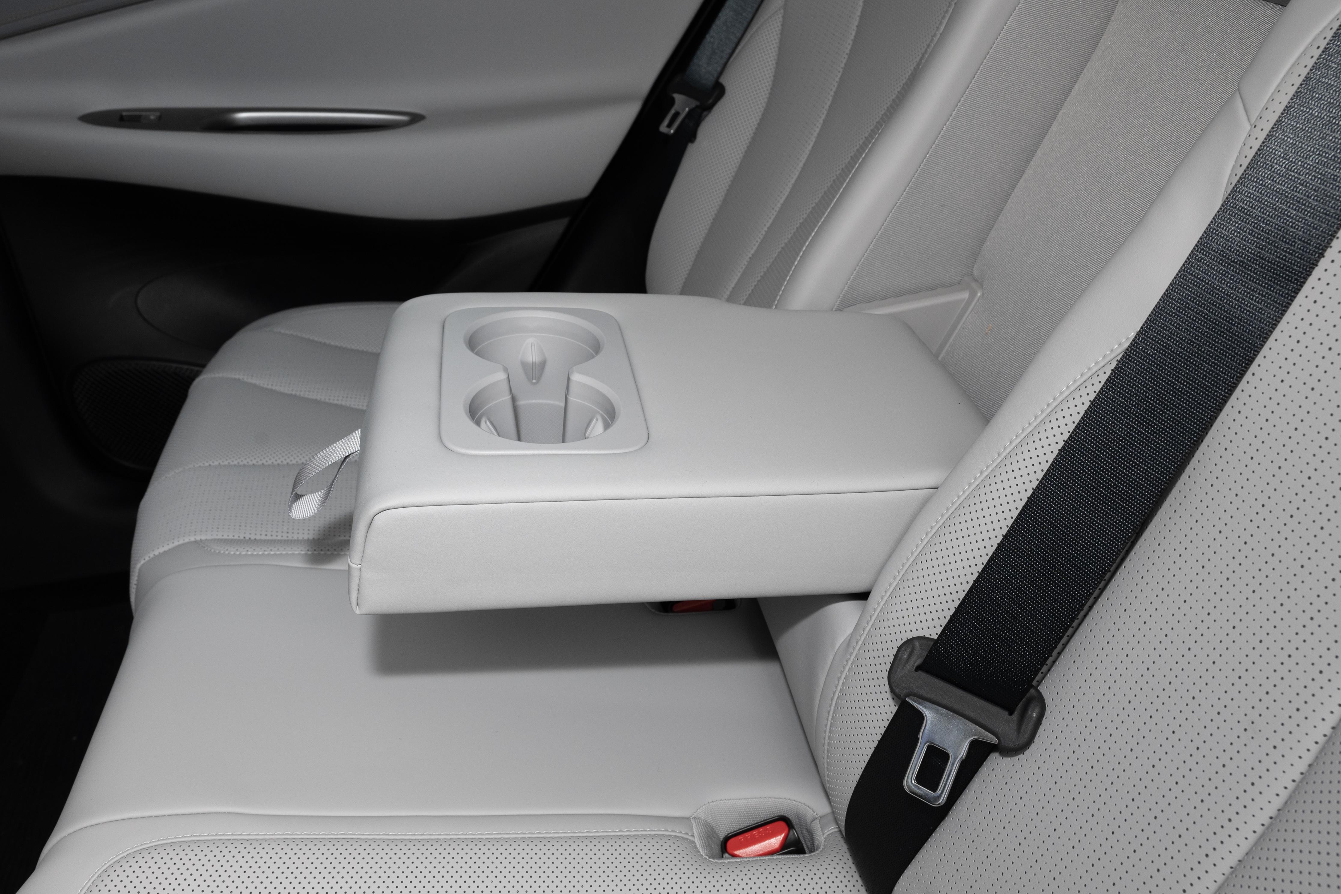 后排座椅靠背角度适中,长时间乘坐不会觉得累,不过实测发现,后排座椅中间位置的坐垫略硬,长时间乘坐容易疲劳,这是需要优化的地方。后排配备了独立的空调出风口和两个水杯架,能满足后排乘客的基本需求,细节处考虑得比较周到。