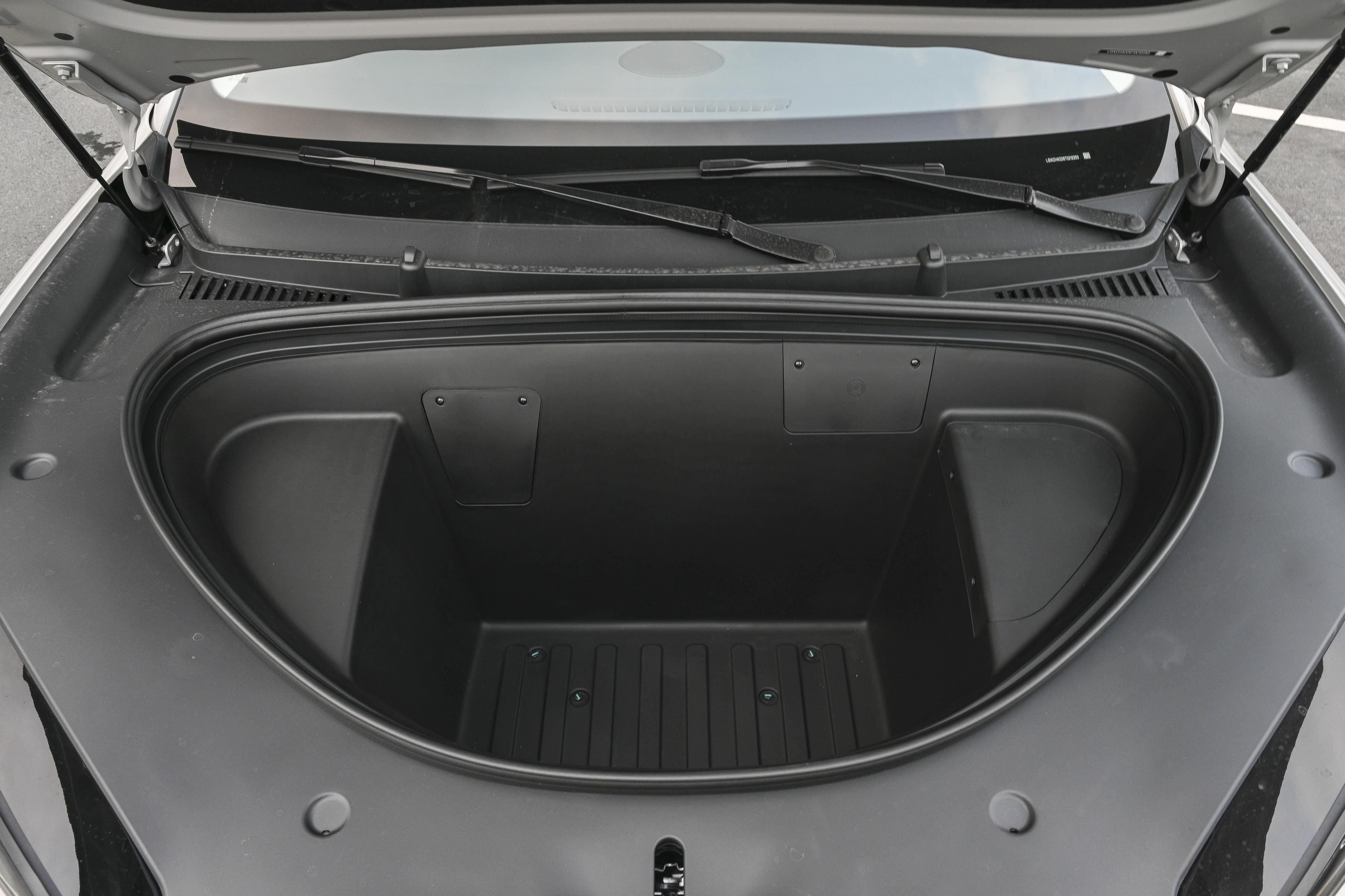 储物空间方面,该车的表现比较贴心,兼顾了实用性和便捷性。车头的前备箱容积实测约142L,平时可以放充电枪、洗车工具、小型行李等,不用占用后备箱空间,让后备箱能更好地放置全家出游的行李,实用性较强。