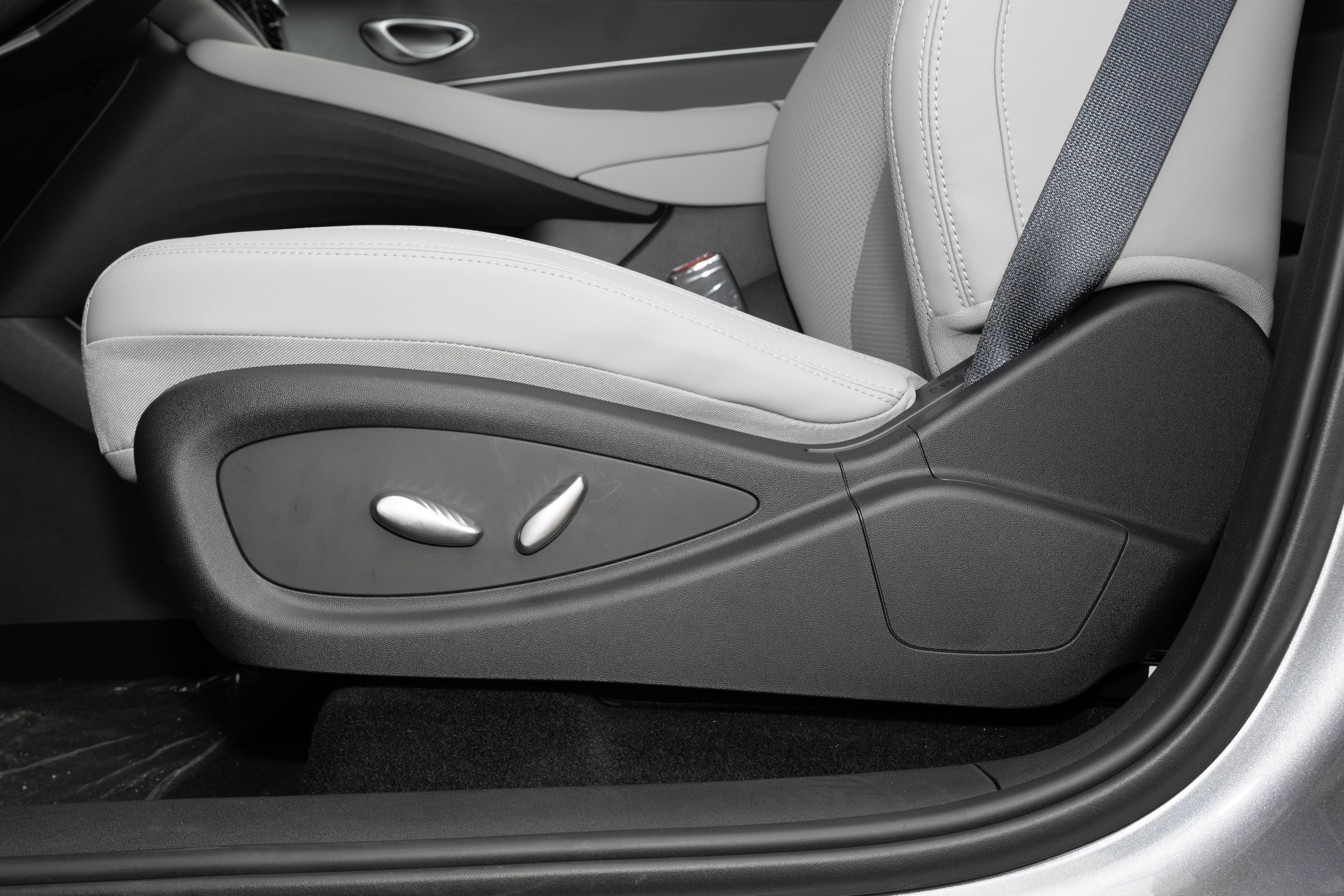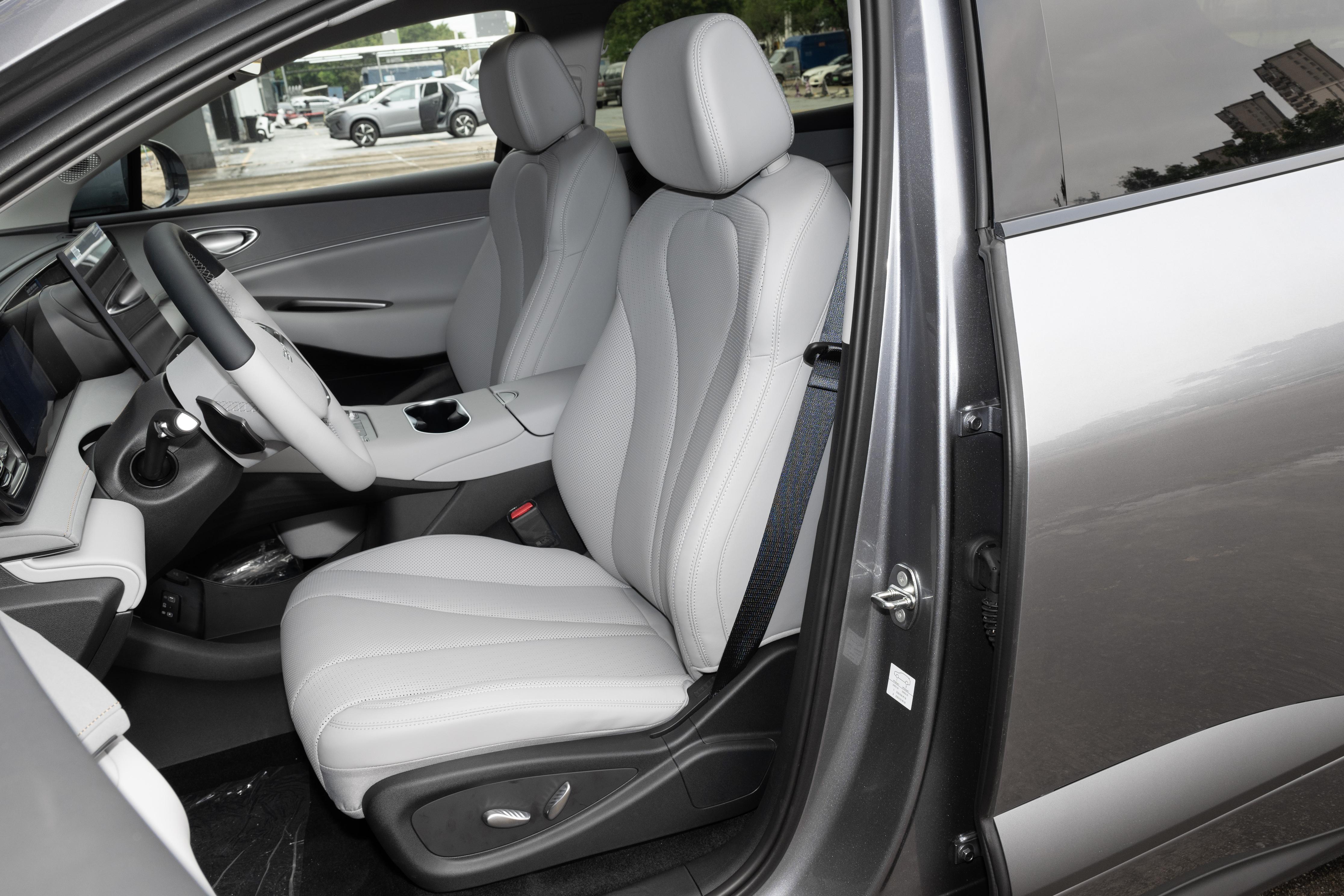 舒适性方面,车内的方向盘是皮质的,握感舒适,搭配电子式怀挡换挡,操作便捷,还节省了车内空间,让中控区域看起来更整洁。座椅用的是仿皮材质,质感不错,主副驾都支持电动调节,前排座椅还有加热、通风、记忆功能,实测表现尚可。