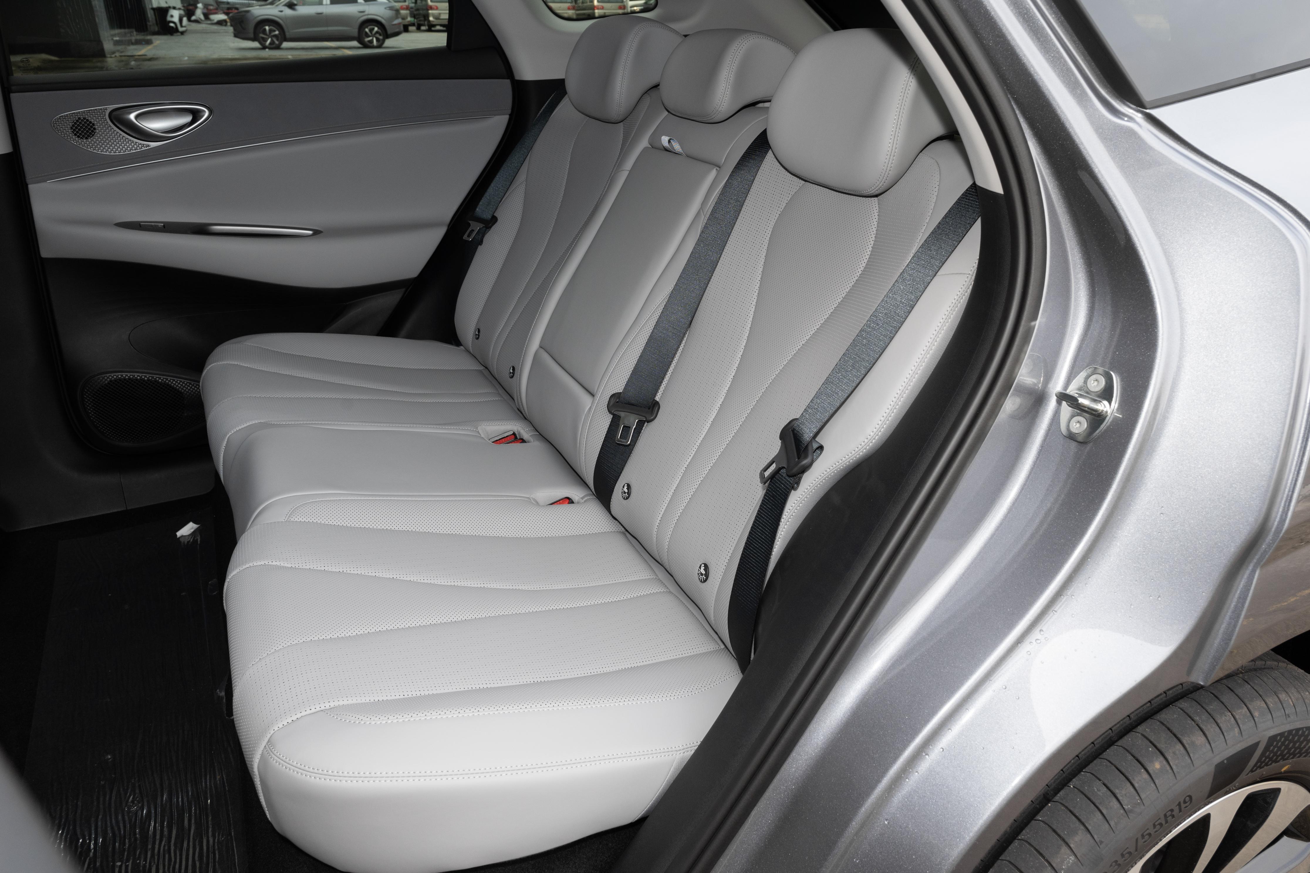 保持前排座椅位置不变,再坐进后排,腿部空间能达到一拳四指,头部也有一拳的余量,这个空间表现对身高182cm的人来说都比较友好,更别说普通身高的家庭成员了。最值得一提的是它的纯平地板设计,后排坐三个人的时候,中间乘客的脚不用蜷缩,能自然放置,舒适性能得到基本保障,不会出现挤腿的情况,这对多人口家庭来说实用性很强。