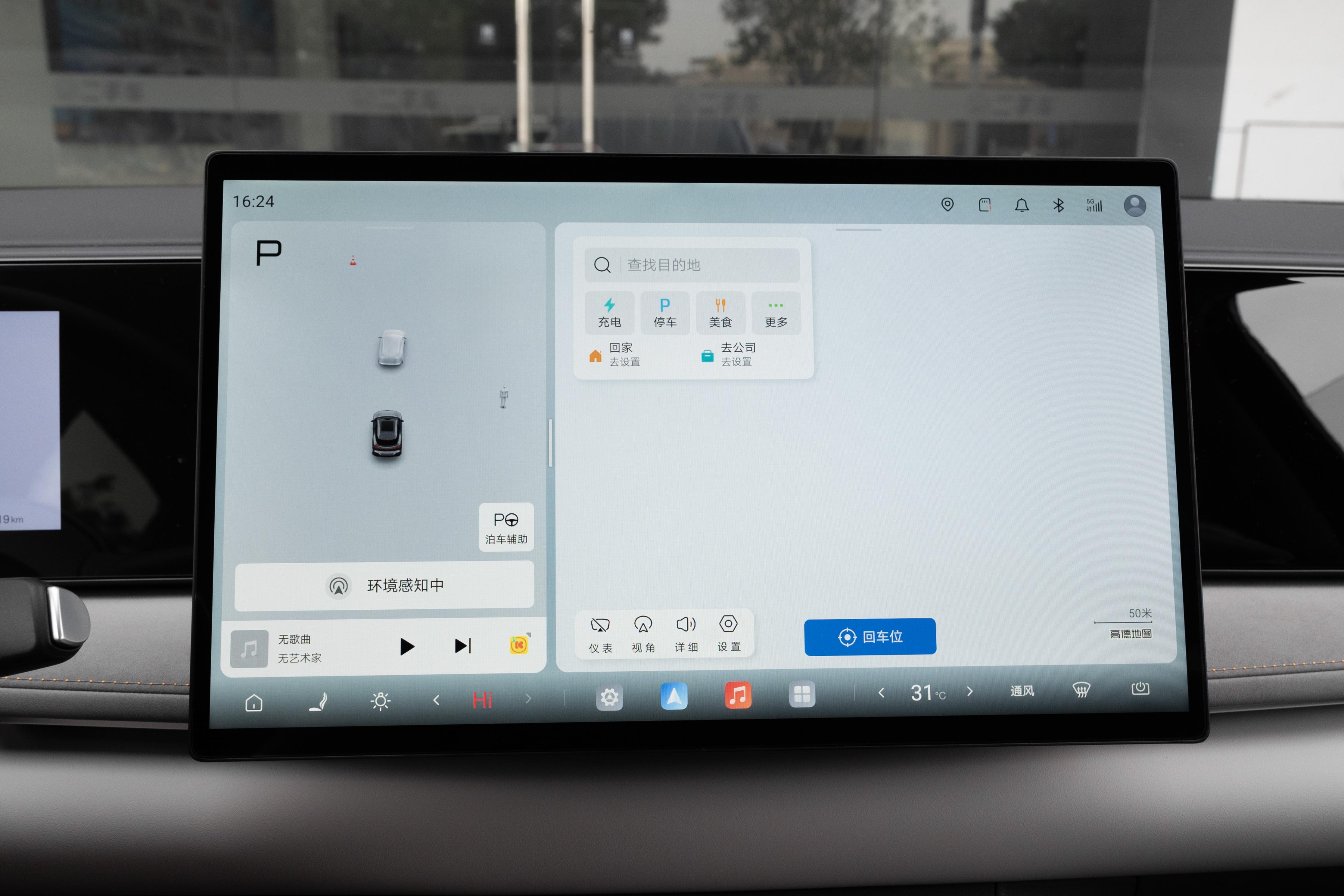 辅助驾驶方面,该车配备了L2级辅助驾驶相关功能,搭载NVIDIA DRIVE Orin N芯片,算力达到84TOPS,车外有12个摄像头、12个超声波雷达和3个毫米波雷达,前向最大探测距离能达到350m,能覆盖高速、城市、泊车等多场景驾驶需求。