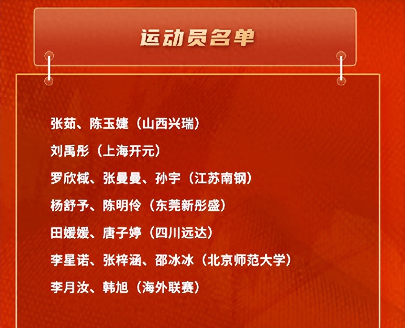 众多名将和功勋球员淡出了这届国家队,李梦、杨力维、王思雨等人领衔的95后国手已正式退出国家队,他们均没有入选这次集训名单。中青代国手只留下了李月汝、韩旭和张茹,另外年龄不算很大的刘禹彤也时隔多年再入集训队。除此之外,几乎全是00后队员,正式宣布新老交替开始。