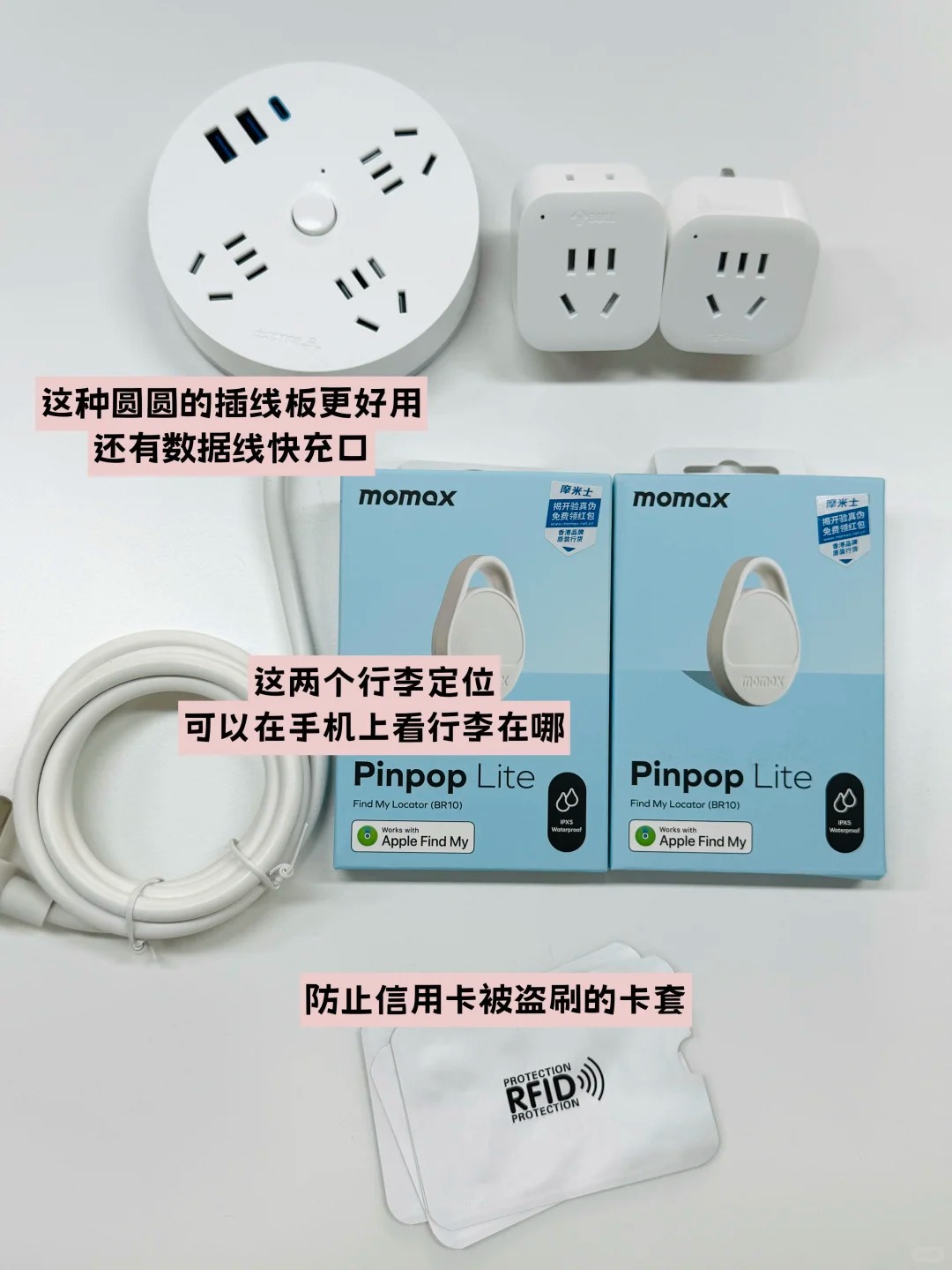 2.插线板(买的是圆盘的这种排插,这样插头就不会挤得插不上了,还能直接插数据线给手机或充电宝充电)