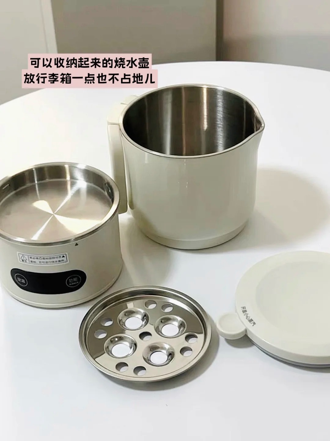 5.烧水壶(烧水壶带着很方便,收纳起来就一个小圆盘大小,还可以放蒸盘,以后煮鸡蛋也有着落了)