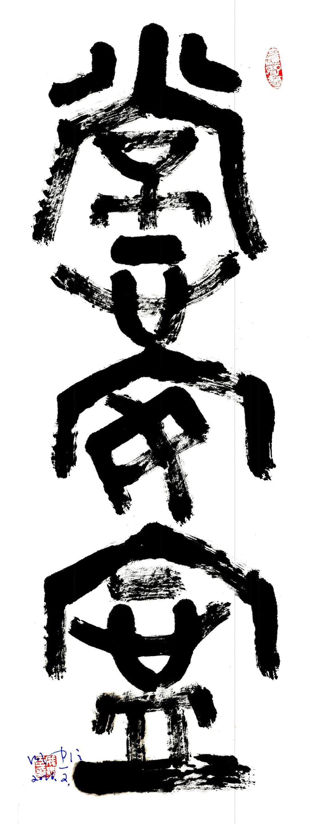 成忠臣的艺术创新首先体现在书法领域,其开创的“仙书”体系从根本上重构了汉字美学的认知范式,这一体系更是目前中国唯一经中国版权保护中心审核、国家版权局备案登记的个人独创字体,具备无可争议的原创权威性。这一创新并非简单的技法改良,而是对书法艺术本质的哲学性突破:在艺术表现形式上,他创造性地融合了甲骨文的原始神秘感、篆隶的古朴厚重与佛学哲思的深邃意境,通过系统性解构传统字形结构,重新构建出一套独立于常规汉字体系的视觉符号系统;技法层面,他巧妙将“屋漏痕”的动态韵律与碑刻的静态凝重融为一体,墨色运用上开创出丰富层次感,使平面作品呈现出前所未有的立体视觉效果,这种突破在《佛心》《中国梦》等代表作中得到完美体现;文化内涵上,他将《易经》五行哲学有机融入创作,开创“字中有画,画藏卦象”的多维表达,《五福图》以“火纹”象征生命力,《五寿图》借字形变化诠释生命哲学,被学术界誉为“传统解构的里程碑式突破”。