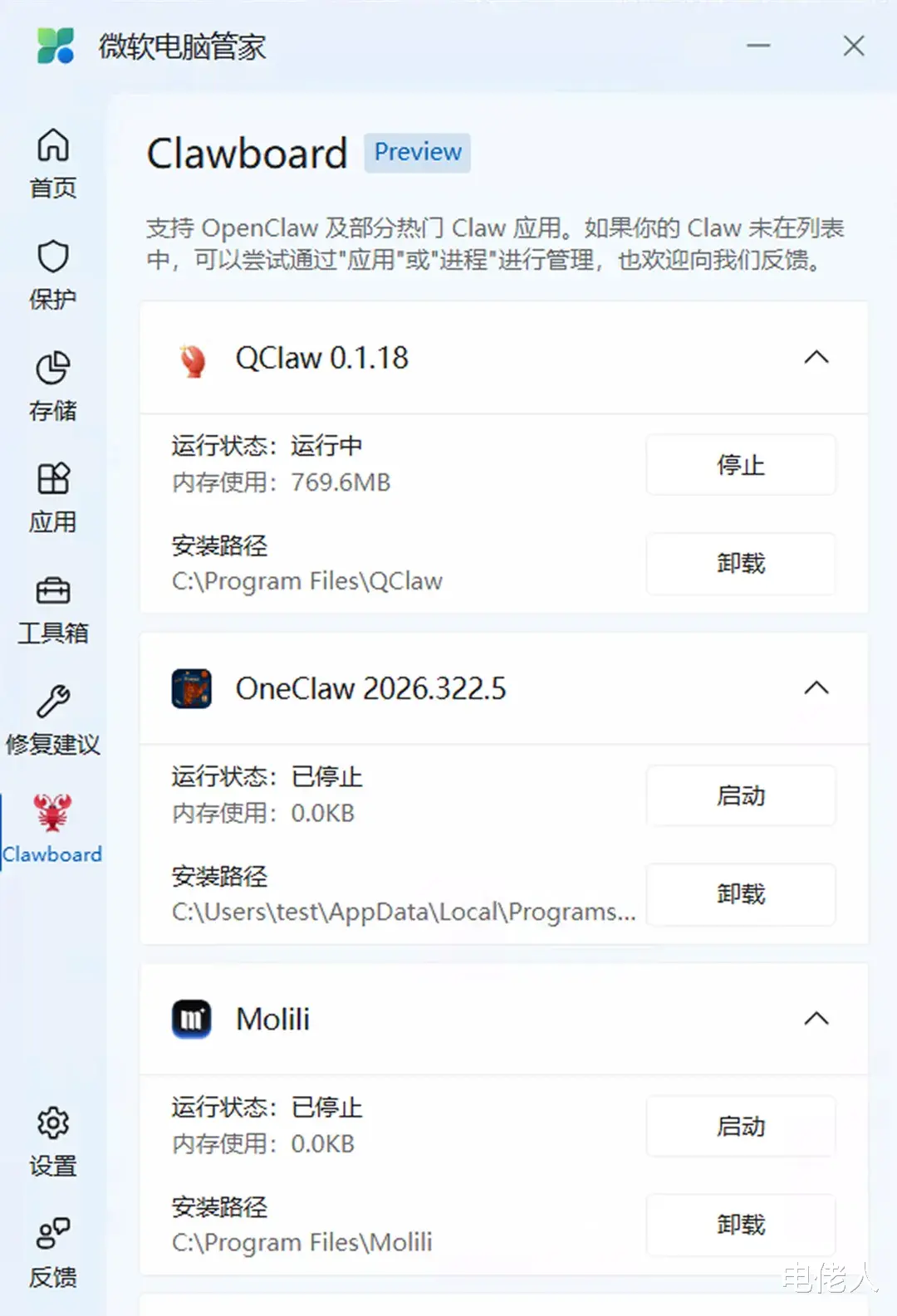 微软电脑管家近日上线的 Clawboard 功能,旨在集中管理已安装的“龙虾”应用,帮助用户快速掌控运行状态,并实现一键启动、停止和卸载。此次扩容新增 6 款龙虾,现已覆盖 OpenClaw、EasyClaw、QClaw、WorkBuddy、AutoClaw、LobsterAI、Molili 与 OneClaw,总计覆盖 8 款主流龙虾平台。下面整理要点,帮助你快速上手与决策。