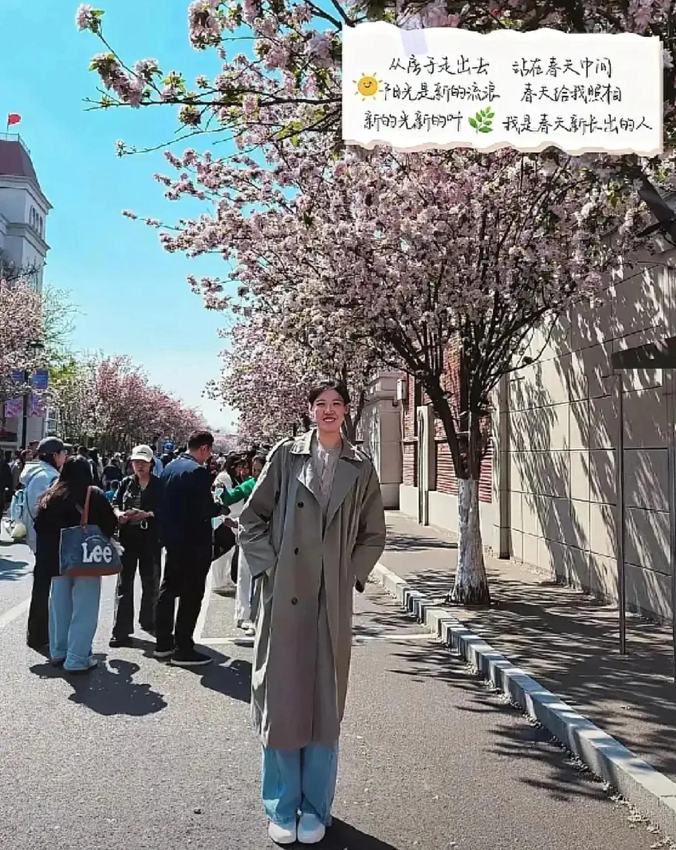 主攻手李盈莹站在天津海棠花下拍照和春天合影。副攻王媛媛在土耳其花树下拍照,也和春天合影。“从房子走出去 站在春天中间, 阳光是新的流浪 ,春天给我照相! 新的光,新的叶,我是春天新长出的人。”
