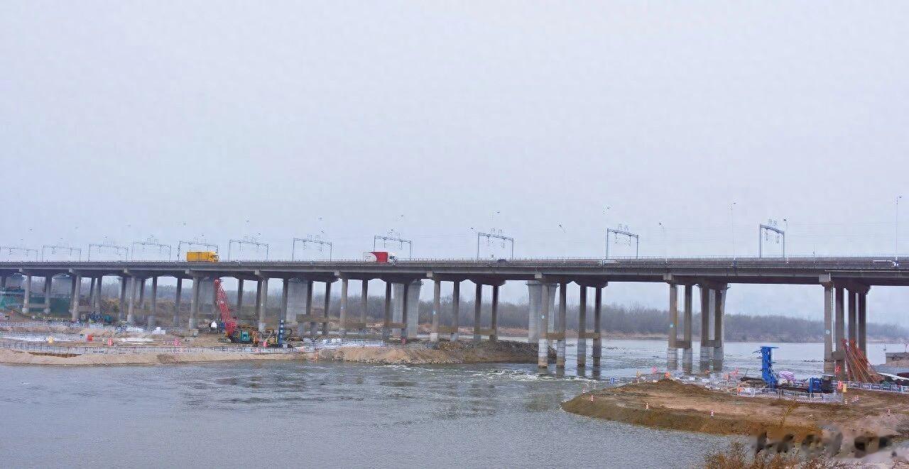 眼下,渭河处于枯水期,水位下落,河床显露,工人们正抢抓施工“黄金期”,全力推进工程建设。