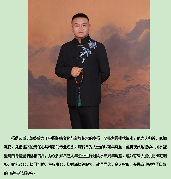 杨鼎玄道长,自幼他便深受祖父真传,踏上了对易学的探索之路。他的易学传承多元且深厚。这种得天独厚的条件,使他接触到不同流派对于六爻文化的独特见解与方法,为其深入研究六爻文化奠定了坚实基础。