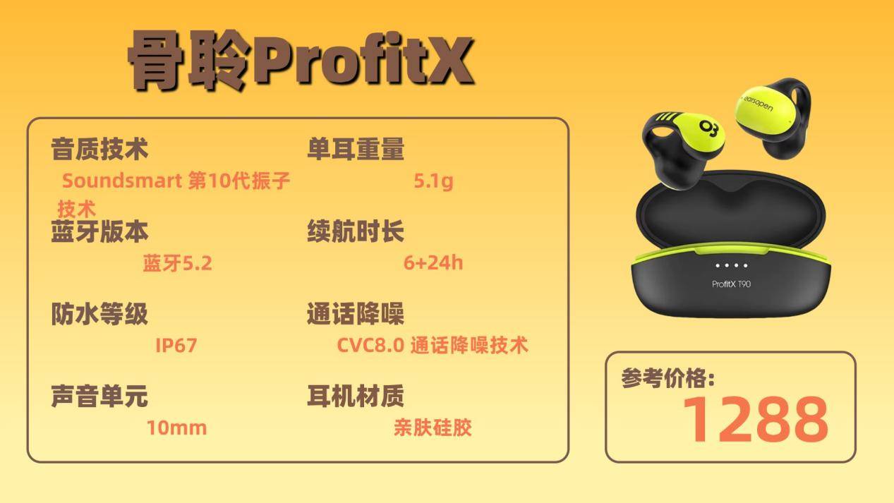 骨聆ProfitX是一款专为运动打造的耳机,外观上,耳机仓呈长方形,耳机本体形状圆润丝滑,线条柔韧流畅,除去黑白两色外,还有颇具运动感的荧光色款。佩戴体验上,亲肤硅胶材质柔软贴耳,耳机单体较重有7.3g,但无伤大雅,体感轻盈舒适,人体工学设计,防脱稳固,适合骑行跑步时佩戴。