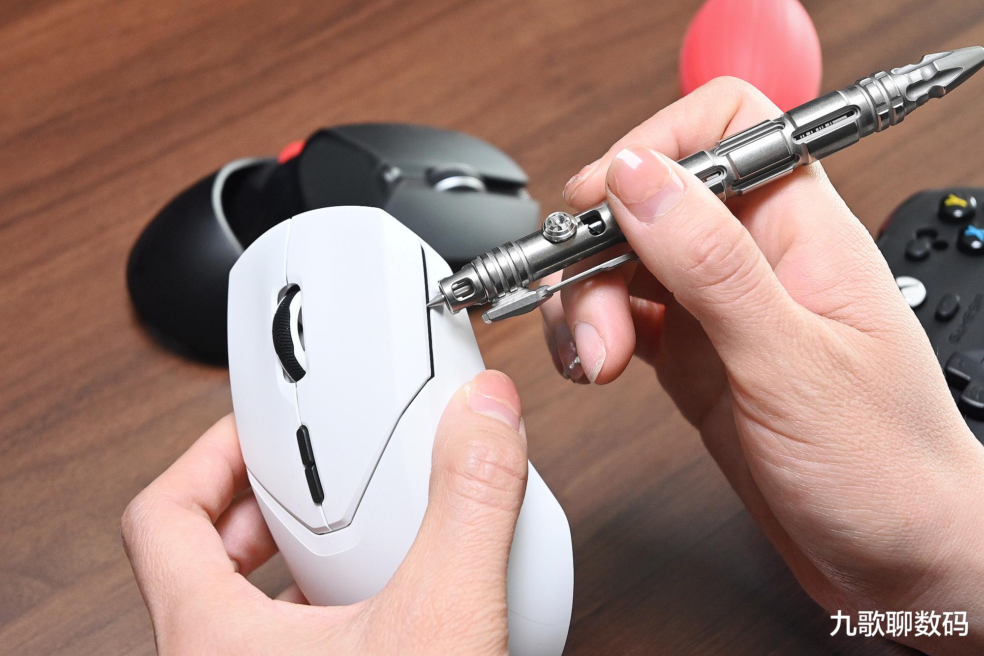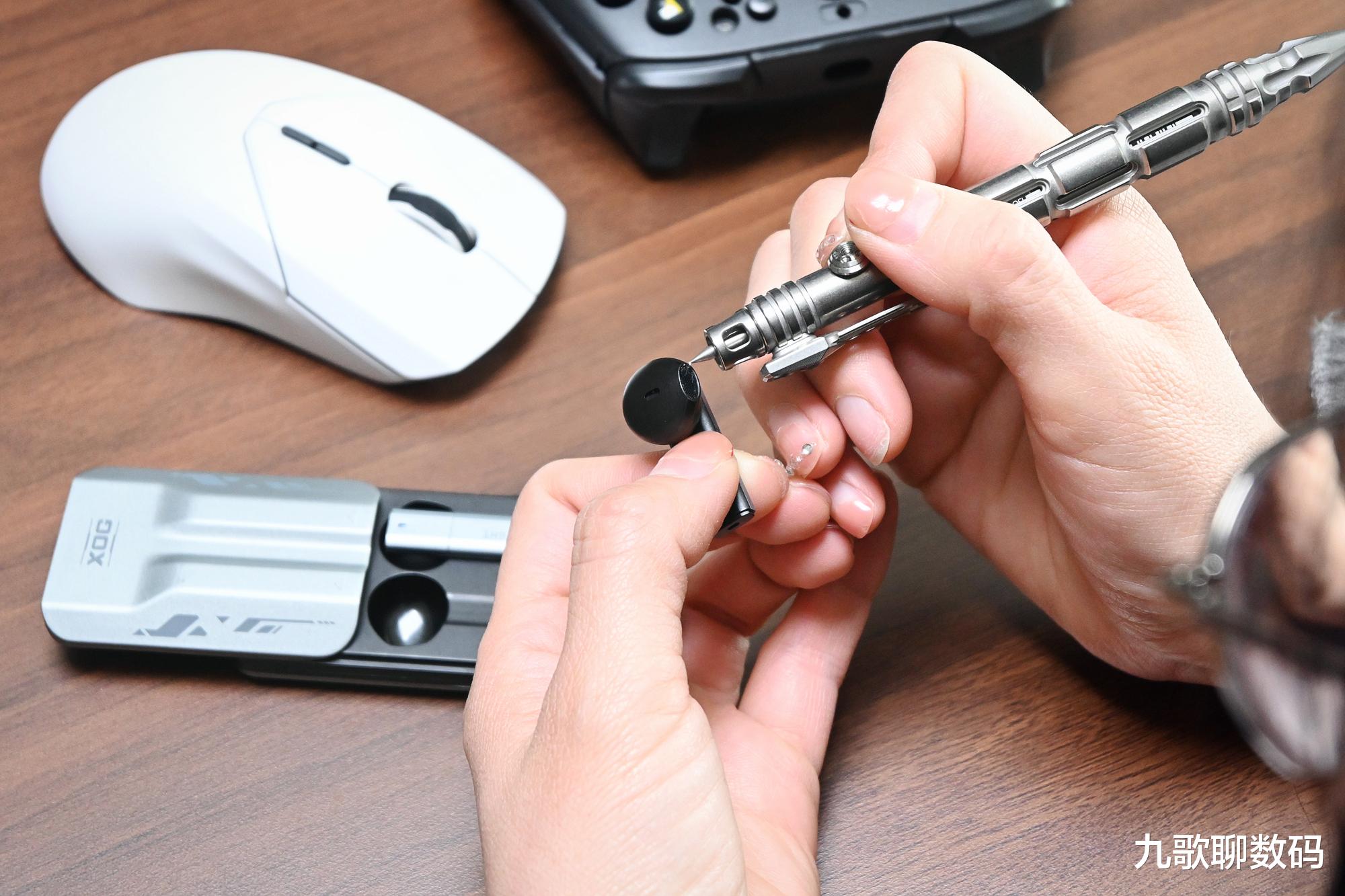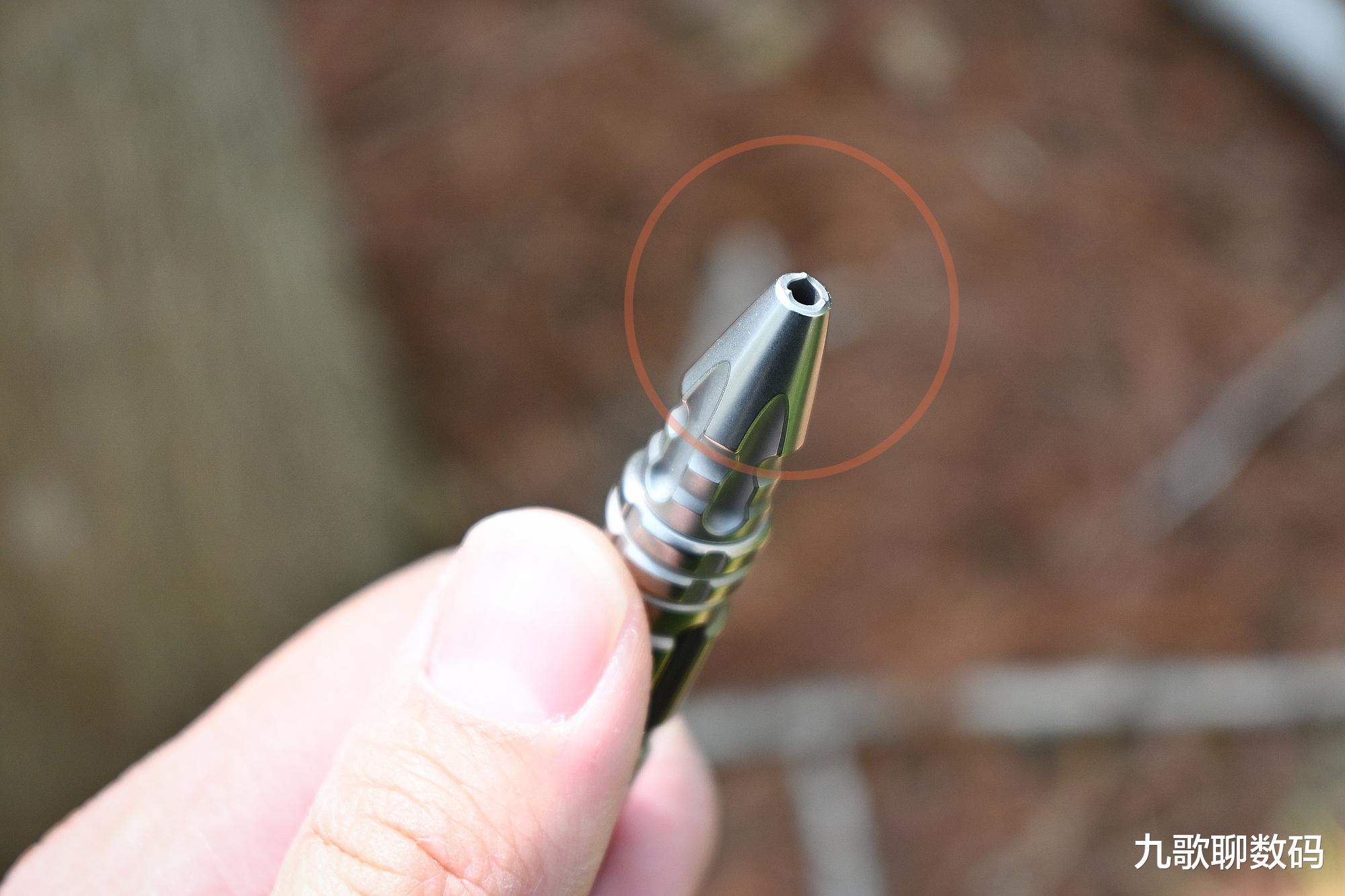 此外,这个战术刺本身细长,所以还可以用来清除一些缝隙难除的污垢,比如日久打油的鼠标,长期佩戴沾满了耳垢的耳塞,都可以用它来深度清洁。还有就是星矢本身做得很厚实(笔筒厚度可达3.65mm),钛合金的韧性和强度都很出色,应急时还可以当做撬棍来使用,那叫一个结实耐造。