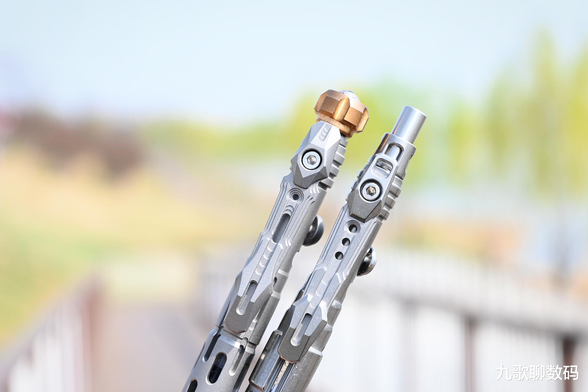 北斗作在细节上做得也相当用心。CNC精密打磨下有着刚中带柔的温润手感。虽棱角分明,但并不硌手。盾牌造型折笔夹由螺丝固定,其轮廓如蓄势待发的战舰。此外,在笔夹尾端还预留有氚管槽位(1.5*6mm标准规格),我们可以自行购买氚管或平替荧光管来实现定位。