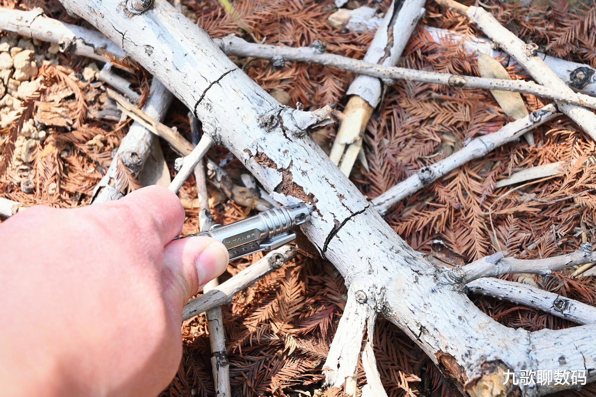 它们的具体表现如何呢?我尝试着用笔头来击破瓦片、啤酒瓶等,都能顺畅无阻,快速击碎。其后又用战术刺来划开厚实的纸盒和树枝,也是丝滑般流畅。