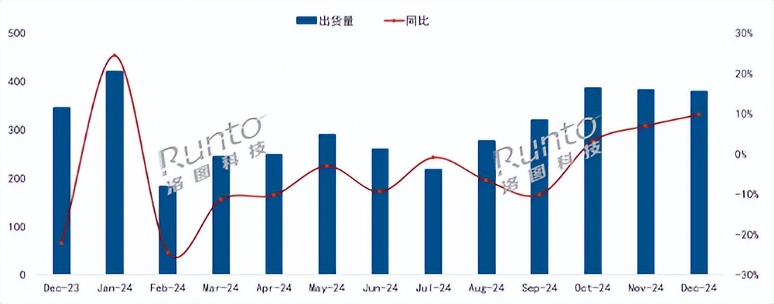 比较有意思的是,虽然大家都有国补推动,但市场表现还是“几家欢喜几家愁”,其中对市场出货量推动最大的还得是国产电视“一哥”海信,在需求增长的情况下,这“战绩”差距也是拉开了不少。根据数据海信系电视12月出货量同比增幅超过30%,涨幅速度高居行业第一,也是当月唯一一家出货量超百万的品牌,一个字:猛!