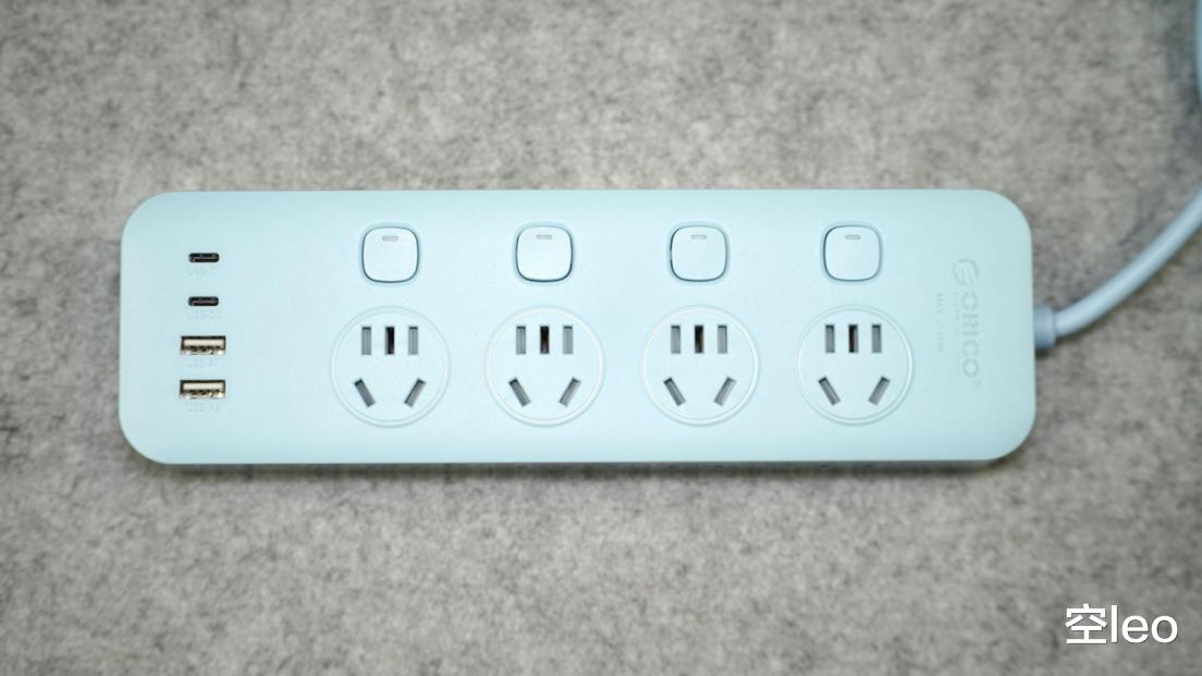小胖条的接口配置堪称豪华。除了4个分控AC插孔外,它还配备了2个USB-A和2个USB-C接口。