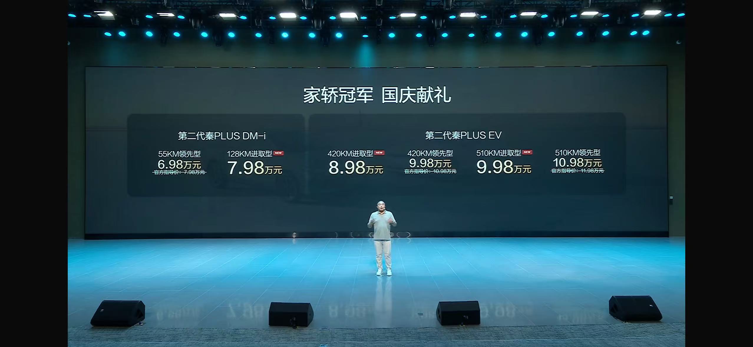 此次上新比亚迪正式推出秦PLUS DM-i 128KM进取型、秦PLUS EV 420进取型以及510KM进取型三款新车同时宣布全系车型享受国庆献礼价限时6.98万元起售。无疑第二代秦PLUS瞄准的是在A级家轿市场的领先地位和牢牢把控。